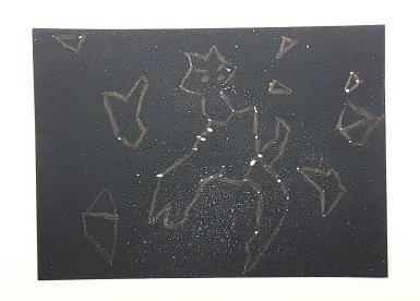 寒い日が続きますが星は綺麗!ということで、皆さまには飛ばした絵の具の点を自由に結び、星座を描いていただきました。