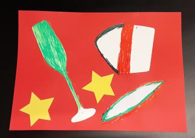 貼り絵でチキンやケーキを貼り、クリスマスのご馳走をイメージしていただきました。