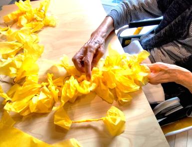 秋にはお花紙でイチョウを制作し、毎年展示範囲を増やしております。