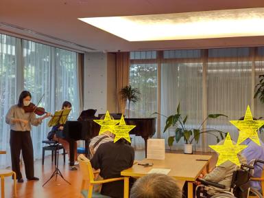 〈龍岡会アート部では、音楽療法・芸術療法を専門に学んだ職員がゲストの皆様に様々なセラピー、アクティビティ、レクリエーションを提供しております。〉