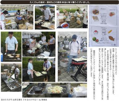 現地で被災地の皆さんにお出しした料理は、デザートなども含めて、ざっと16品目。